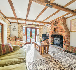 This delightful detached former lodge house is set within a generous and mature plot of approximately 1.25 acres and combines period character with well-proportioned living space. The entrance porch opens into a welcoming reception hall giving access to the principal ground floor rooms. The dual-aspect sitting room is filled with natural light and features a bay window, feature fireplace and double doors opening onto the garden. Further double doors lead into a spacious garden room with lantern roof and underfloor heating, creating a versatile space for year-round use.