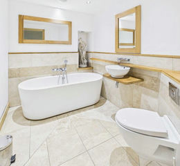 From the Inner Hall stairs lead to the Second Floor with recessed storage cupboards on the stairs. The Master Bedroom is well proportioned with pitched ceiling and fitted wardrobes. 2 double glazed Velux windows, inset ceiling down-lights, exposed beam and door to En-Suite Shower Room. The Shower Room has a corner shower enclosure, circular basin on an oak plinth, low flush WC and chrome heated towel rail. Attractive part tiled walls, tiled floor, exposed beam and recessed storage.