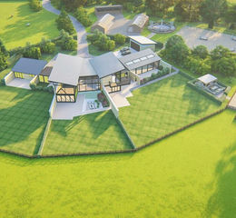 The total square footage is approximately 7400 sqft, to include five bedrooms all with ensuite facilities, internal swimming pool, open plan vaulted living space, sitting room, kitchen with utility boot room.