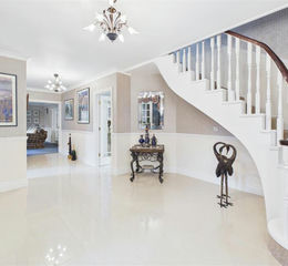 Reception Hallway - 7.81m x 2.63m (25'7" x 8'7") - truly impressive introduction to the home, the reception hallway immediately conveys a sense of space and elegance, featuring polished porcelain tiled flooring, refined décor, and a sweeping staircase that creates a striking architectural focal point. Beautifully light and welcoming, this generous entrance sets the tone for the property while providing seamless access to the principal ground floor living accommodation.