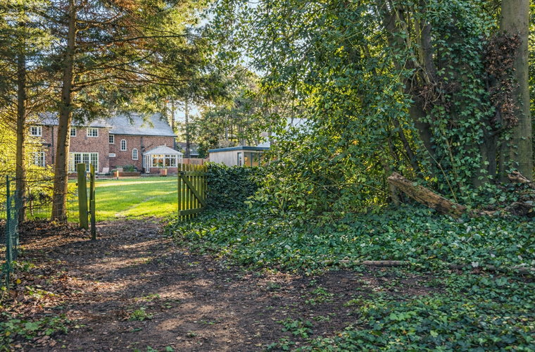 trees. The private woodland beyond the lawn provides opportunities for hide and seek,