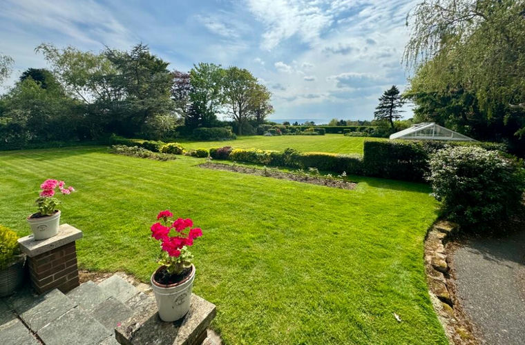 A private gate onto the 12th fairway of Caldy Golf Course also sits at the end of the wide lawned garden.