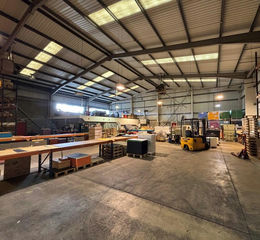 Internally, the property has effectively been split into two units by way of a party wall, with an opening interlinking the two sides. Each side of the building generally provides clear and unencumbered production accommodation with solid concrete floors throughout with an eaves height of circa 6.1m to the underside of the haunch.