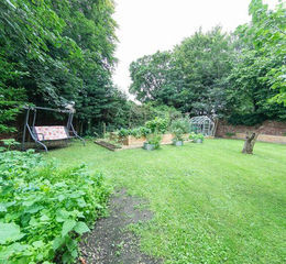 Substantial mature private garden, largely laid to lawn with combination of high brick wall and fence to boundaries. With veg plots, greenhouse & mature fruit trees. Attractive Indian stone flagged patio, gravel pathway to rear garden and high fence and established hedge to boundaries.