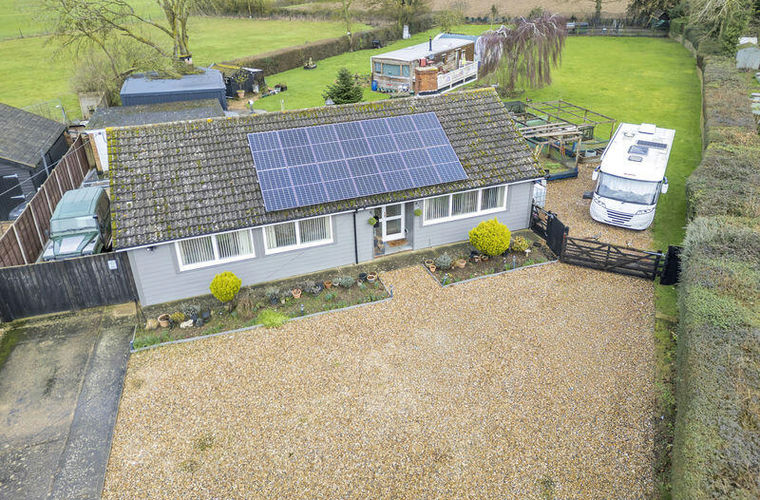 Situated on a generous plot of approximately one acre, this beautifully presented four-bedroom detached bungalow offers an exceptional blend of space, versatility and countryside charm. Enjoying uninterrupted field views to the rear, the property benefits from two garages, extensive parking and a substantial workshop.The well-planned accommodation begins with a welcoming entrance hall, leading to a convenient cloakroom and a spacious sitting room centred around an attractive wood-burning stove. The heart of the home is the impressive kitchen/dining room, thoughtfully designed for both everyday living and entertaining, with direct access to the garden and a bright conservatory.From the hallway, four well-proportioned bedrooms provide comfortable and flexible accommodation. The family bathroom completes the accommodation and is fitted with both a separate bath and walk-in shower.Externally, the property truly excels. The substantial rear garden enjoys open views across adjoining fields and is predominantly laid to lawn, complemented by a spacious seating terrace, wood-fired hot tub, raised decking area and attractive shingle pathways. A variety of mature shrubs and trees provide privacy and seasonal interest, creating a tranquil outdoor retreat.Further enhancing the appeal are multiple outbuildings, including a large workshop with power and lighting, and a versatile multi-purpose annex complete with its own air source heat pump and wood burner — ideal for guest accommodation, a home office, studio or gym.To the side of the property, an additional parking area leads to two garages, both fitted with electric roller doors for convenience. Gated access to the front opens onto a substantial driveway providing ample off-road parking for numerous vehicles.This impressive home offers a rare opportunity to acquire a spacious, well-equipped property in a delightful semi-rural setting with outstanding outdoor space and excellent ancillary accommodation.Additional Information
