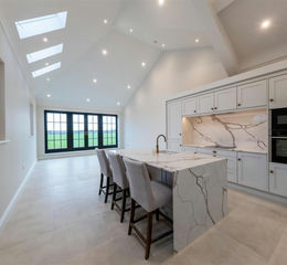 The bespoke kitchen boasts quartz worktops and a Quooker boiling water tap as well as integrated appliances such as oven, hob, dishwasher and fridge freezer. A fantastic benefit within this home is a custom-built utility room, just off the kitchen.