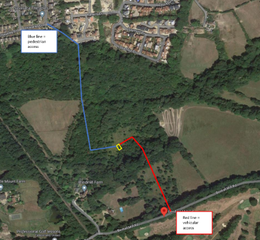 This plot of land measures approx. 1750 sq.ft. The plot is not in public view and is within an area of outstanding natural beauty . Vehicular access available from Benhall Mill road via a gate and footpath access available from Chievely Drive. The plot is located on an opening surrounded by woodland. It is 2 miles away from the town of Royal Tunbridge Wells and the A26. It is around 15 miles from the M25, M26 and M20. Transport links are close by such as Frant and Tunbridge Wells train stations.