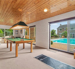 A raised terrace forms the social heart of the garden and is home to the outdoor heated swimming pool, a standout feature that elevates the lifestyle on offer. Adjacent to the pool is a substantial and highly versatile games room measuring approximately 13’5” x 28’4”, fitted with a bar area, snooker table, dartboard, WC, shower room and useful storage cupboard. This space offers excellent flexibility, whether retained as an entertainment space or adapted for an office suite or subject to planning converted as a self-contained annexe, this remarkable space is sure to appeal to all! A covered area just to the front of the games room provides clear potential for further enhancement, such as an outdoor kitchen or pizza oven, creating a natural extension of the leisure facilities already in place.