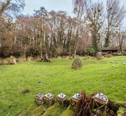 The property is accessed via Oak 5-bar gates opening onto a parking area with space for several vehicles. The grounds are a particularly noteworthy feature, extending to approximately 2.6 acres and comprising a combination of formal gardens and established woodland. The land offers exceptional natural appeal, with a variety of mature trees, seasonal bluebells and orchids, and is further enhanced by multiple natural springs that form streams flowing through the woodland.