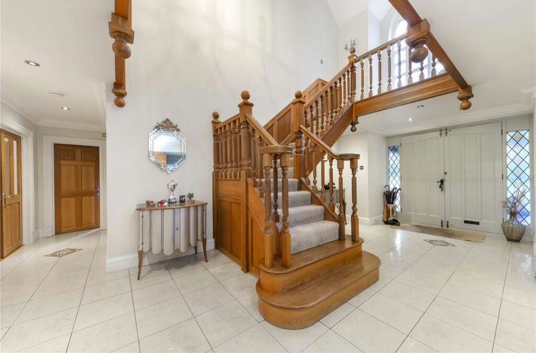 Leaded windows, chimney stacks and hung tiles are sympathetic to the local vernacular, while inside a plethora of beautifully considered spaces unfold from the grandeur of a central entrance hall where an exquisite solid oak staircase reaches up to a galleried landing.
