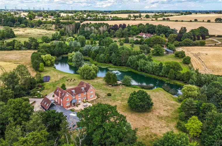A wonderfully positioned country house in an idyllic setting, with the added benefit of a swimming pool and gym complex, with gardens and grounds approaching 9½ acres, including a lake.