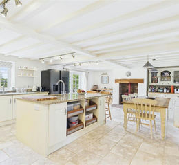 Set within approximately one acre of established grounds, the property perfectly blends timeless period features with sympathetic modern updates. Exposed beams, traditional latch doors, timber-framed double glazing, and exposed brick fireplaces with cosy wood-burning stoves create a warm and inviting atmosphere throughout.