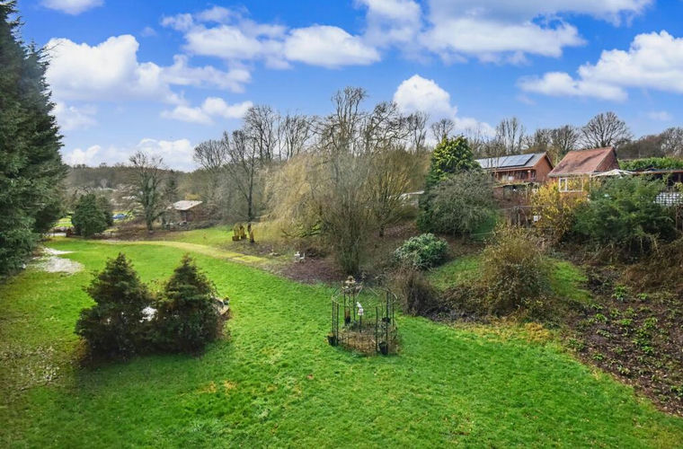 Set within approx. one acre, the lot includes a four bedroom detached chalet, planning permission to re-build the adjacent property, a caravan and extensive gardens with gated access.