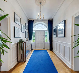 An elegant archway leads from the entrance hall into the inner hallway, where the sweeping staircase rises and a discreet cloakroom is tucked away.