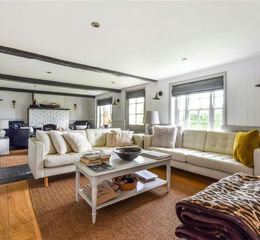 This opens directly into the kitchen/breakfast room, fitted with a wide range of units, quartz worksurfaces, butler sink and Quooker tap. Integrated appliances and a central island with breakfast bar make this a superb space for both family living and entertaining. Three sets of French doors open onto the terrace, while a walk-in larder offers excellent storage and space for an American-style fridge/freezer. A spacious utility/cloakroom provides plumbing for appliances.