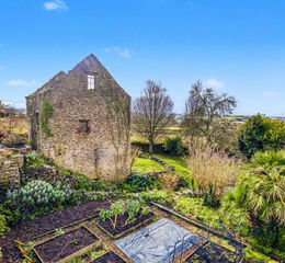 Outside there’s parking for 3 vehicles, a substantial, enclosed walled garden with small tumbling stream and waterfall, 2 green houses, kitchen garden, plus many delightful architectural features and buildings, including a 2 storey Barn and historic Mill House.