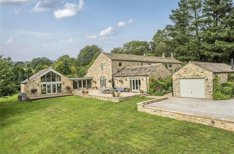 A beautifully converted stone barn offering stylish, versatile living space with stunning valley views, landscaped gardens.