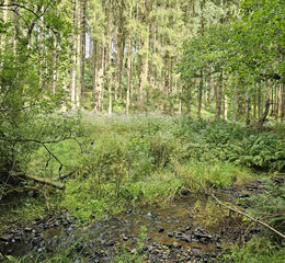 Heathcote Wood offers a wonderful mix of broadleaf woodland, consisting of Oak, Larch and Ash, some spruce, and Fir. A picturesque stream runs along the foot of the wood. The woodland has been well maintained, an established track offering ease of access. Within the wood there is plenty of parking, within a small quarry, stone from which has been used on the tracks.