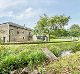 The property is approached by a courtyard. To the right of the property is a set of gates leading onto a gravel parking area and path leading round to the entrance. The rear garden is predominantly laid to lawn with a low level stone wall perimeter and a delightful area of decking, perfect for alfresco dining. The boundary extends beyond the stone wall to the post and rail fencing. A small bridge crosses the stream to a further lawned garden, bordering a neighbouring field, an idyllic spot to relax and unwind. The two sets of stone steps to the front elevation can also be used for access.