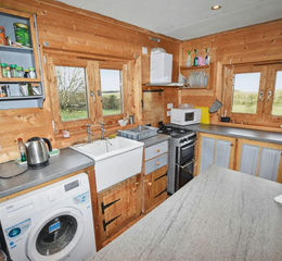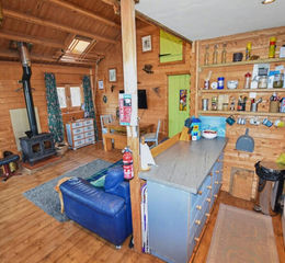 The lodge can be used as a permanent residence and the accommodation comprises: Vestibule, open plan kitchen and living room with wood-burning stove, bathroom, double bedroom and an attic room.