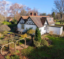 Situated close to The Grange estate and surrounded predominantly by open paddocks, this non-standard construction property sits within a generous garden, accompanied by its own paddock and stables — in all extending to approximately 1.5 acres.