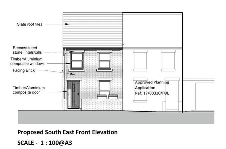 Facing Albany Street, planning is granted for a contemporary, two bedroom detached dwelling with parking and garden.