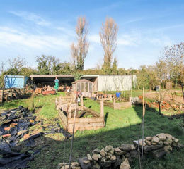 Rear Garden - Vegetable plot. Driveway with turning circle having central flower bed. Access to:-