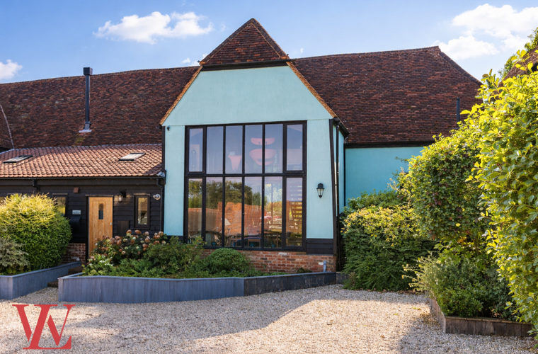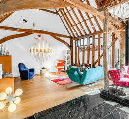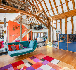 Bridge Barn at Folly Farm in Great Dunmow is a truly unique and exceptional property, originally a 15th-century barn that has been meticulously converted into a ‘Grand Design’-style family home. Completed around 17 years ago to a high standard, this stunning residence blends the charm of exposed beams and vaulted ceilings with a modern, light-filled interior, making it an ideal retreat for those seeking both character and contemporary living.