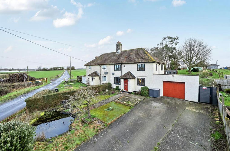 To the front is ample parking for several vehicles, in turn leading to a large garage. The garden comprises a lawned area, pond, and paving, all of which enjoy lovely far-reaching country views. Underground LPG tank. Access gate to the rear garden.