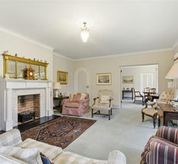 A long drive leads up to a gravel turning and parking area in front of the house. There is a porch to the front with the front door opening to a spacious hall with imposing staircase to the first floor. There is an inner hall leading to a study/library, useful utility room and a ground floor cloakroom. The principal reception rooms are on the southern elevation and interconnect making it perfect for entertaining. There is a spacious double aspect drawing room with feature fireplace and large picture window overlooking the garden. Double doors lead to the dining room with feature curved window and door to the garden. A door leads to the spacious kitchen/breakfast room. It is fitted with a comprehensive range of wall and base units, plus an island. There is an AGA and a dining area to one end. To one side is a lobby with door to the side courtyard.
