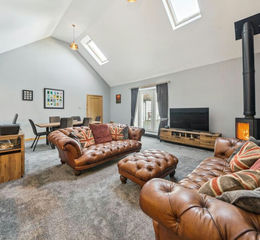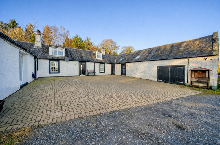Set amidst five and a half acres of land, incorporating two paddocks and two fields , this striking steading conversion is designed as a versatile family home which supports multi-generational living and offers a distinct connection to the countryside.