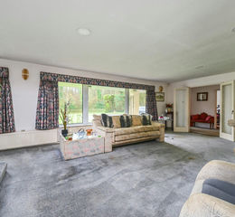 OUTSIDE The property is approached off the lane up a drive to a large area of turning/parking and leading to an integral garage. Lawned front garden leads around to the rear and continues being interspersed with mature shrubs and established trees, the whole being hedge and fence enclosed extending to just under 1 acre (to be verified).