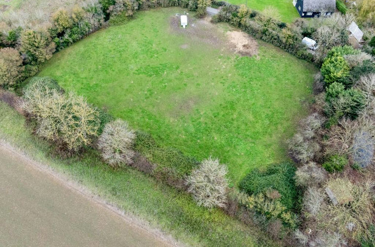 The land is predominantly level and open , bordered by mature hedgerows that provide natural screening and a sense of privacy.