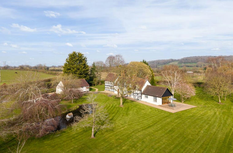 A sprawling & characterful country home of traditional timber-frame build in over two acres of flat, private grounds with far-reaching views across the landscape. Absolutely perfect for a busy family - six great bedrooms and three bathrooms. Plenty of spaces for relaxing, entertaining and working - the sitting room is a bursting with character and period charm. Light the fire in the winter and cosy up for an evening in front of the TV whilst the kids play in the snug. A big Sunday roast with the extended family a doddle in the dining room with space for a proper table. The undisputed hub; the vaulted kitchen with floor-to-ceiling glass and bi-fold doors - "inside-outside" living an effortless reality - and with far reaching country views! Outside, the level plot is a sprawling canvas for children to roam or for a spot of gardening on a sunny Sunday. For the car enthusiast - plenty of garage space plus a bonus space for a home gym or perhaps a yoga studio. The location balances peace & quiet with a great local buzz - walk to Holloways for a coffee and a browse, or stroll to the Hop Shed for a Friday pint with fellow locals.