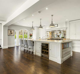 and ample space for both relaxed family living and entertaining. Large windows frame views of the gardens and flood the interiors with natural light throughout the day. Additional reception space includes the exquisite bespoke fitted study, spacious play/family room, cosy snug with extensive fitted cabinetry and a large utility/boot room.