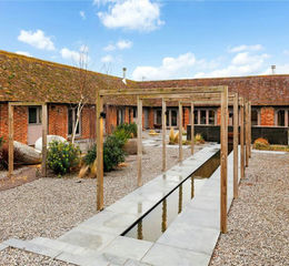 West Barn is accessed off a private lane that is shared with the three neighboring properties. The main parking area is adjacent to the double garage with ample areas to park within the plot. The grounds are made up of paddocks and land that extend to circa five acres and provide the idyllic view from the house with a broader countryside scene has a backdrop. The equestrian facilities are excellent, with a well presented stabling facility comprising five looseboxes, a store, tack room, wash bay and a ménage. The grounds are complete with a tennis court, horse walker and workshop. A beautiful feature is the central courtyard that provides a seamless continuation of the interiors, with doors that open form the house on to the terrace. Well designed, it is a green oasis during the summer months, with its mature planting and sunken al fresco dining area.