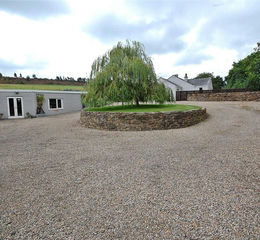 To the entrance of the property is a large graveled driveway including a roundabout and gated access to the front and rear of the bungalow.