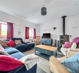 Converted in 2020 to an exceptional standard, this impressive three-bedroom semi-detached barn conversion enjoys an elevated position with far-reaching rural views visible from almost every room. Its name translating to a "home filled with love" features an inviting entrance hall/utility fitted with slate flagstone flooring and underfloor heating, opening into a spacious open-plan kitchen, dining and living area centred around a cosy log burner. There are three generous double bedrooms, including a master bedroom with en-suite, along with a superb family bathroom complete with a roll-top bath. Externally, the front offers a lawned garden with pergola—an ideal spot for enjoying the warmer months—while a further garden to the side sweeps around to a private rear patio.