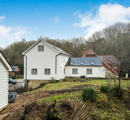 Bradleys Mill is a Grade II Listed former corn mill which has been subject to extensive restorations into a single detached property. The original part of the Mill was built in 1834 with later additions added to the rear in the early 20th century; some of the original mill workings are preserved in situ as a feature. The external walls have been insulated and clad in weather board, the roof is renewed and covered with natural slate tiles. Many of the original windows are preserved with some new additions to the rear extension. Internally plasterwork is mainly lime plaster with some interior walls finished in plaster. The property offers the unique opportunity to finish internal fitting out to the buyer’s own specification, so to allow the buyer to choose the fittings and colour scheme rather than have a standard developer finish. There is a completion schedule listing all items to be completed with an estimate of cost. The buyer has the choice of engaging DBS to undertake work as Project Manager and Interior Designer or carrying it out themselves. The accommodation comprises on the ground floor a substantial entrance/dining hall, kitchen with separate utility room, office and cloakroom. The first floor has a substantial sitting room with a door to the rear garden and the principal bedroom suite with bathroom and wardrobe room. On the upper floor are two bedrooms and two bathrooms, with storage available on the ground and upper floors. A buyer will benefit from a Build Zone Warranty upon the works being finalised.