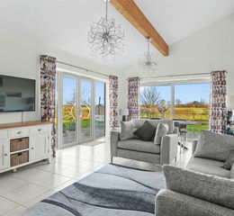 Discreetly positioned within an exclusive development of just seven bespoke homes, Northbyre is a striking single-storey residence built in 2019, thoughtfully designed to echo the form and simplicity of a modern agricultural barn. Set within a peaceful backwater location and surrounded by open countryside, this exceptional home enjoys the finest position on the site, boasting uninterrupted 180-degree panoramic views across rolling fields and open landscape.