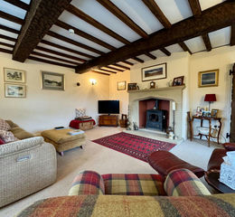 The property is entered into an entrance hall from where the rooms lead off and the stairs lead up to the first floor. To the left is the spacious and dual aspect living room which has a beamed ceiling and a stone fireplace with a log burning stove. Across the hallway is the traditional kitchen diner which has a good range of fitted units which are complemented by a central island and underfloor heating. There is a Gas cooker and fitted appliances including a dishwasher and undercounter fridge/freezer and ample space for a family dining table. Usefully there is an understair storage cupboard and a door leading to the attached garage.