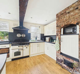 What a fantastic space! With Upvc windows to the side and rear elevation, the kitchen has a range of cottage style wall and base units in cream, with black work surface over, agar style cooker, single drainer ceramic sink with mixer tap over, original brick store with cupboard and shelving, this all opens to the dining room, with central heating radiator, laminate flooring, ceiling spot lights, door leading into the inner hall.