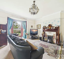 Having a floor to ceiling timber bay window to the front elevation, ceiling light, feature fire in surround, x 3 central heating radiators, picture rail to ceiling.