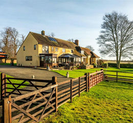 The 70+ acres of farmland is shaped like an arrow head; from the house it spreads to the south, west and east. To the west of the gardens are the various paddocks, enclosed by post and rail fencing, beyond which are fields and a distant spinney belonging to the farm. A third of the Guernsey Hill Spinney, shared with a neighbouring farm, also belongs to Park Farm. There are numerous indigenous hedges and a specimen oak tree in one of the fields. The farmland has numerous rides, particularly along the headlands, and there are in excess of 20 cross-country jumps built into the landscape which accord with the schooling area below the tennis court.