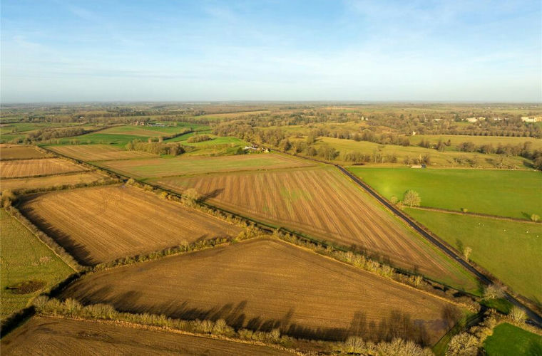 Park Farm is situated in the north west of Aylesbury Vale, about three miles north-west of the county town of Buckingham. Turning west off the locally renowned Stowe Avenue, a minor road forms a southern boundary of the Stowe estate and the northern boundary of Park Farm. The property is in the centre of Buckinghamshire farmland, local communities being small hamlets. In the winter, when the trees in the estate are bare, there are views from the front of the Park Farm of the Palladian building of Stowe School and other monuments visible from the fields. From the rear of the house the farm drops down to the ‘back road’, the most southernly boundary of the farm, which is obscured by established hedgerows; farmland extends to each side of the garden.