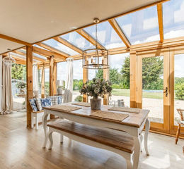 The grounds are immaculately landscaped, with a south-facing lawn and paddocks that will appeal to equestrian enthusiasts. To the north, a tranquil outdoor pool is complemented by a bespoke summer house, creating a perfect space for leisure and relaxation. Sustainability is a key feature, with ground-mounted solar PV panels reducing the property's environmental footprint.