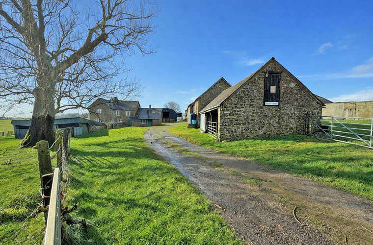 It offers a range of traditional farm buildings including a large chaff house, threshing barn, cart linhay, dutch barn and various pole barns in need of    repair. There is one good modern steel framed farm building and a further isolated farm building within the farmland. The holding is ring-fenced        comprising approximately 160 acres (64 hectares) of farmland which includes approximately 27 acres (11 hectares) of woodland. The land is gently sloping with workable sized parcels, benefiting from an internal stone track which  provides good access to all parcels.
