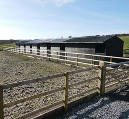 Timber framed on concrete flooring under pitched sheeted roof comprising 7 loose boxes to include a double / foaling box.