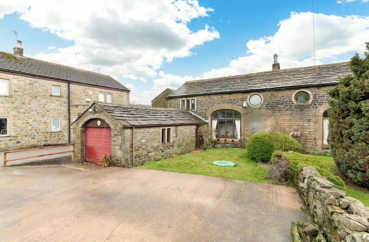 Externally to the front, the property is approached via a private shared driveway off Snug Lane, which leads to a hamlet of beautiful period properties. The subject property Barn End features a substantial driveway providing off-street parking as well as turning for multiple vehicles. The driveway leads to the attached integral garage which is of stone construction with stone tiled roof. The front garden is laid predominantly to lawn with flower and shrub beds and attractive stone wall boundaries, and the gardens do enjoy pleasant open aspect views across neighbouring fields over the way as well as far reaching views across the valley. There is an external light and external up and down light.
