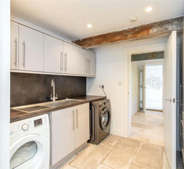 Impressive entrance hall located in full height barn window accessed by large glazed door. Entrance hall with Italian ceramic floor tiles, impressive feature staircase to first floor and cloakroom / W.C located under the stairs. Access to boot room and utility room with cloakroom cupboard, well furnished with lots of storage as well as easy access to the central heating boilers and underfloor heating.